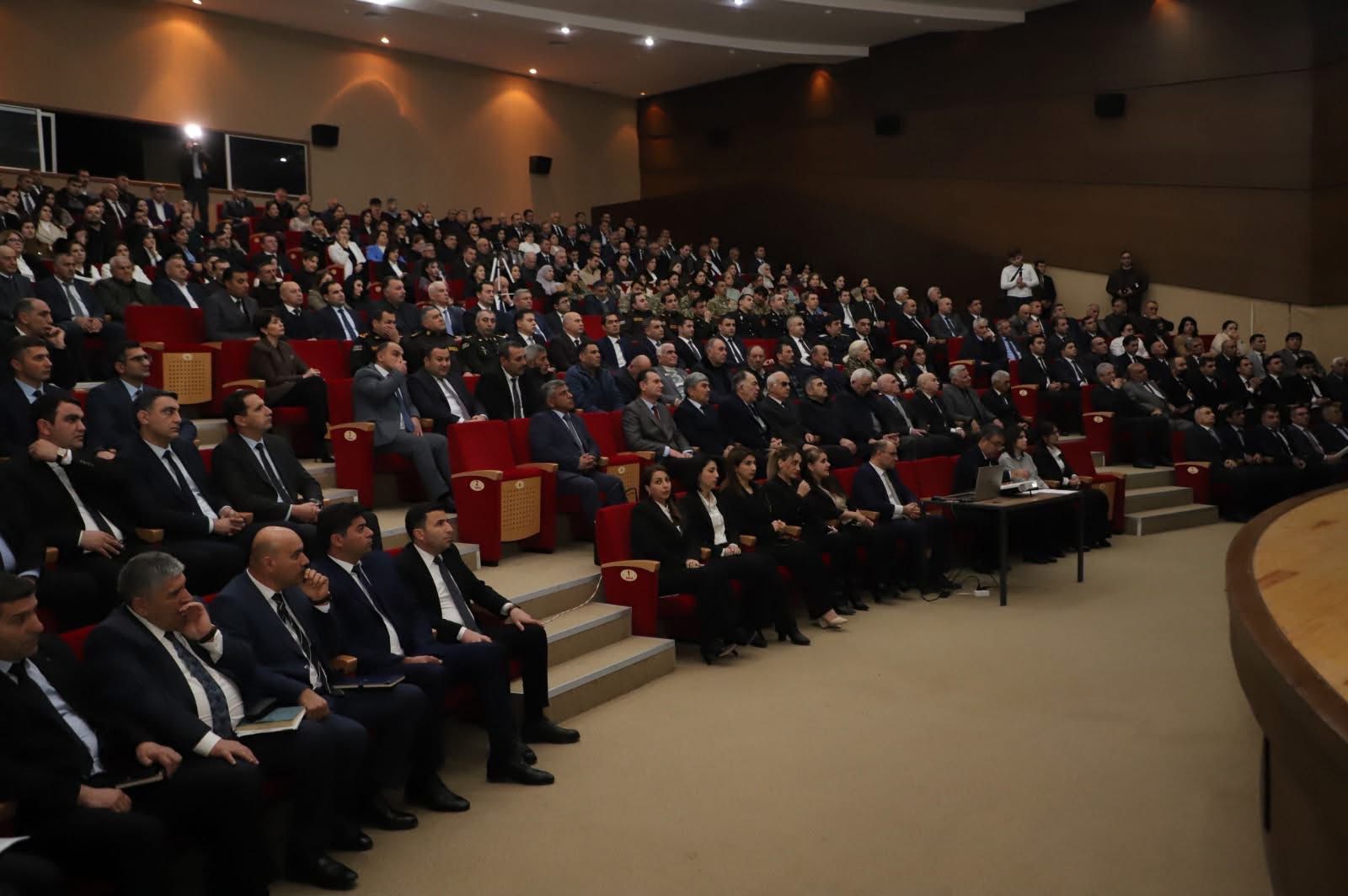 Azərbaycan Respublikası Prezidentinin Administrasiyasının Ərazi-təşkilat məsələləri şöbəsinin 8-ci ərazi sektorunun müdiri Məmmədiyə Məmmədov çıxışında Prezident İlham Əliyev tərəfindən həyata keçirilən ardıcıl və məqsədyönlü siyasət nəticəsində 2025-ci ildə də bütün sahələrdə yüksək nailiyyətlər əldə olunduğunu, o cümlədən beynəlxalq münasibətlər sistemində ölkəmizin mövqelərinin daha da möhkəmləndiyini vurğulayıb. Natiq 2026-cı ilin “Şəhərsalma və Memarlıq İli” elan olunması bu sahədə tarixi ənənələrin yaşadılmasına və Azərbaycanın milli inkişaf strategiyasının, qlobal məsuliyyətinin və gələcəyə yönəlmiş baxışının ifadəsi olduğunu diqqətə çatdırıb.