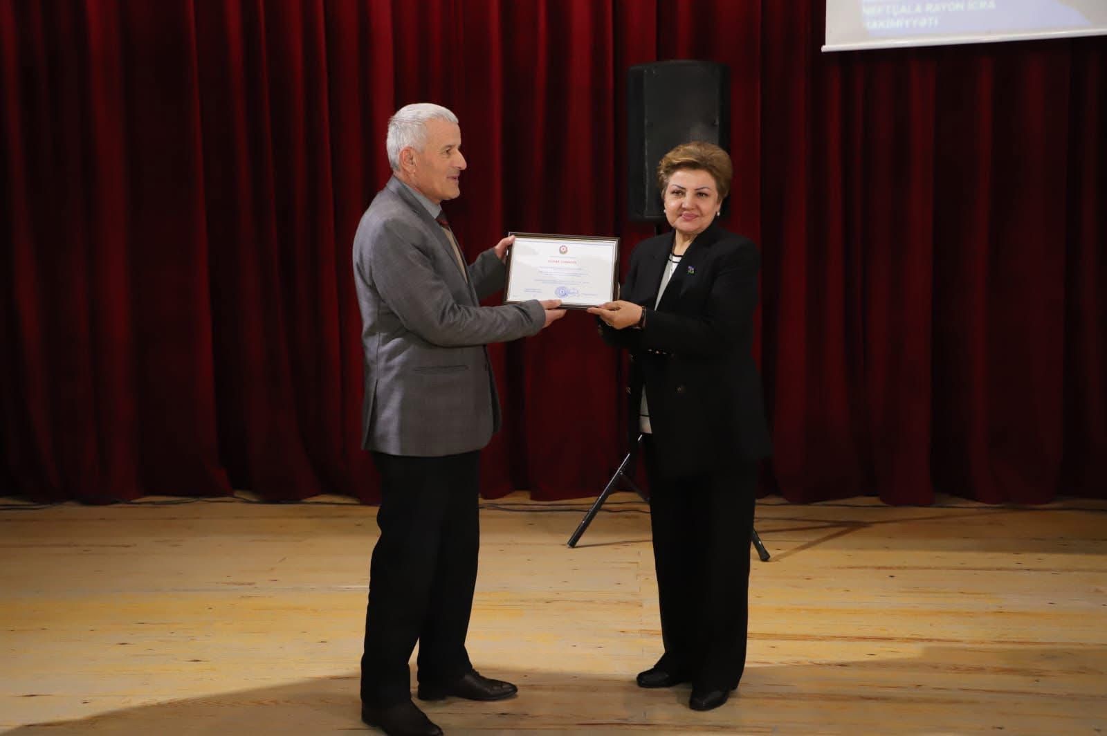 Çıxışlardan sonra “Konstitusiya və suverenlik İli” çərçivəsində həyata keçirilən tədbirlərdə, eləcə də hesabat ilində rayonumuzun sosial-iqtisadi, ictimai-siyasi həyatında fəal iştirak edən və uğurlu nəticələr əldə edən bir qrup şəxsə Rayon İcra Hakimiyyəti başçısının Fəxri Fərmanları təqdim olunub.